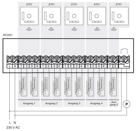 | RCH01E5005-01-29K | Funksteuerung für Heizkreisverteiler, Easywave, 230V, 5x Thermostat + 1x Umwälzpumpe, potentialbehaftet |